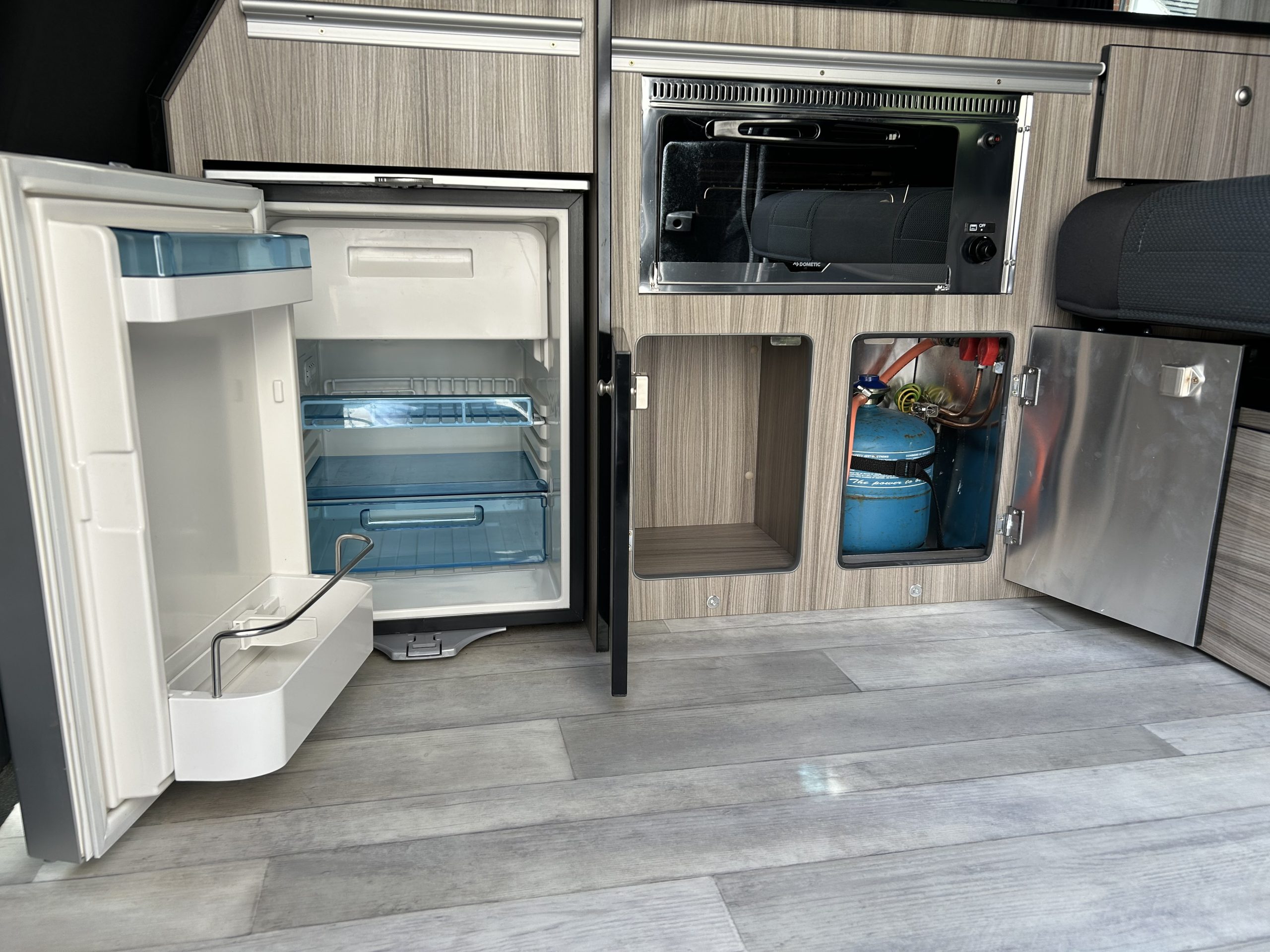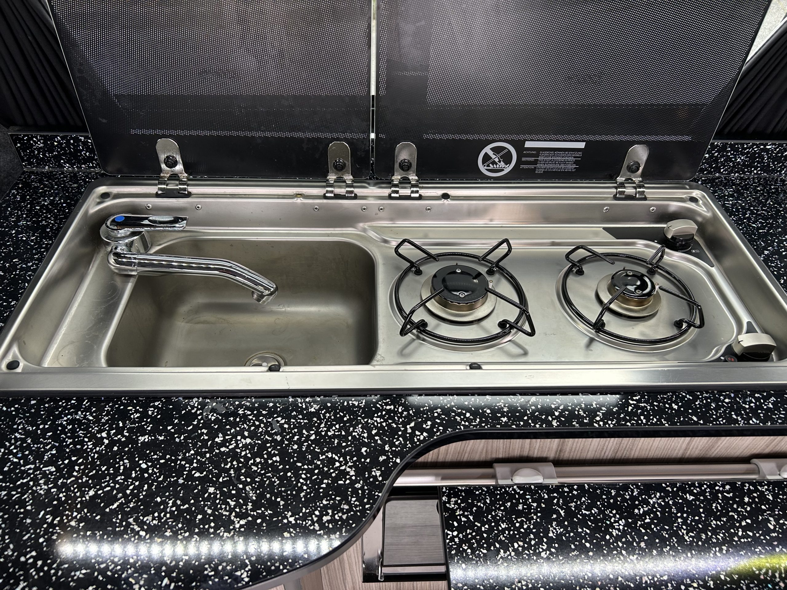 - Leisure battery. Dometic fridge and 2 burner gas hob, stainless sink and tap.